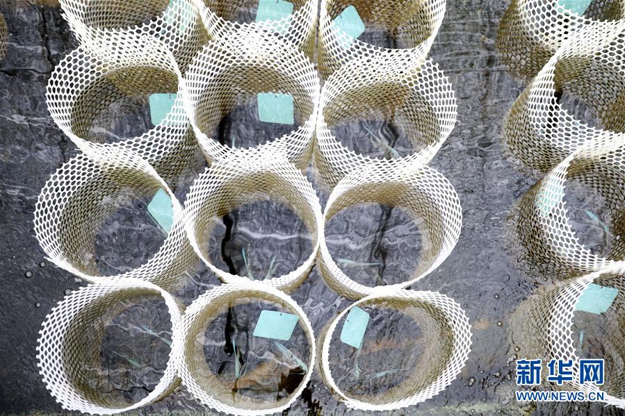 這是張忠堡村村民李國(guó)鵬養(yǎng)殖池里的觀賞魚(yú)育種筐(8月4日攝)。新華社記者姚劍鋒攝