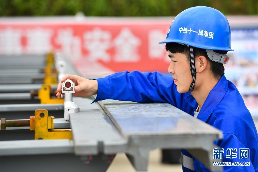 8月5日,中鐵十一局技術(shù)員在清遠(yuǎn)磁浮軌排基地的試驗(yàn)梁軌排上放置精調(diào)棱鏡。目前,廣東首條中低速磁浮線——清遠(yuǎn)磁浮旅游專線項(xiàng)目建設(shè)有序推進(jìn)。廣東清遠(yuǎn)磁浮旅游專線項(xiàng)目全長(zhǎng)約38公里,分兩期建設(shè)。首期全長(zhǎng)8.014公里,將在9月份開始鋪軌,預(yù)計(jì)在2020年底實(shí)現(xiàn)主體工程全面完工。新華社記者劉大偉攝