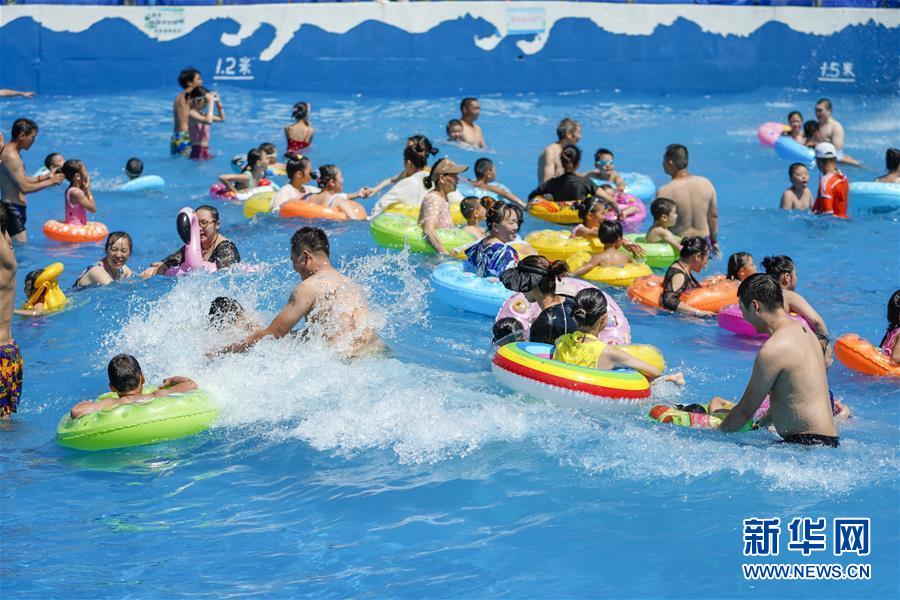 8月5日,重慶涪陵紅酒小鎮(zhèn)水上樂園內(nèi),市民在水中嬉戲。當(dāng)日,重慶市氣象臺再次發(fā)布“高溫橙色預(yù)警信號”,重慶大部分海拔400米以下地區(qū)日最高氣溫將升至37℃以上,局地可達40℃以上。許多重慶市民涌進當(dāng)?shù)氐乃蠘穲@和泳池,在水中享受夏季的清涼。新華社記者劉潺攝