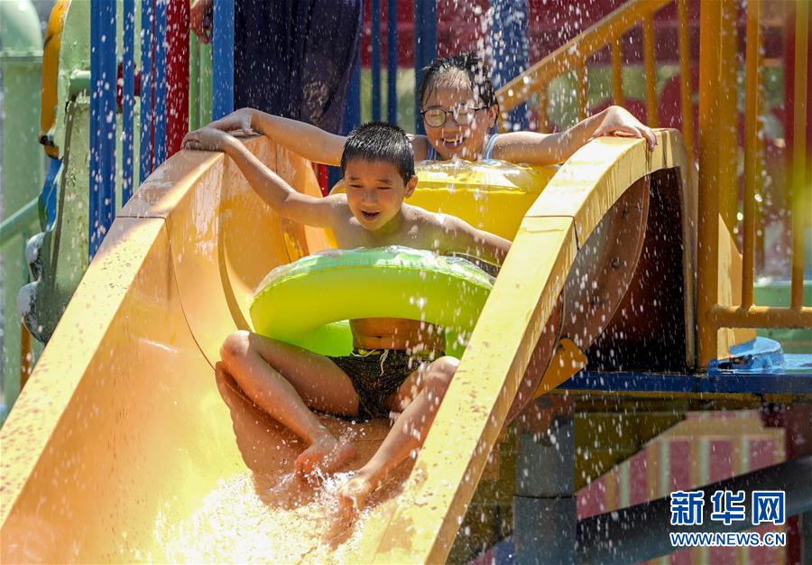 8月5日,重慶涪陵紅酒小鎮(zhèn)水上樂園內(nèi),市民在體驗(yàn)水上游樂項(xiàng)目。當(dāng)日,重慶市氣象臺(tái)再次發(fā)布“高溫橙色預(yù)警信號(hào)”,重慶大部分海拔400米以下地區(qū)日最高氣溫將升至37℃以上,局地可達(dá)40℃以上。許多重慶市民涌進(jìn)當(dāng)?shù)氐乃蠘穲@和泳池,在水中享受夏季的清涼。新華社記者劉潺攝