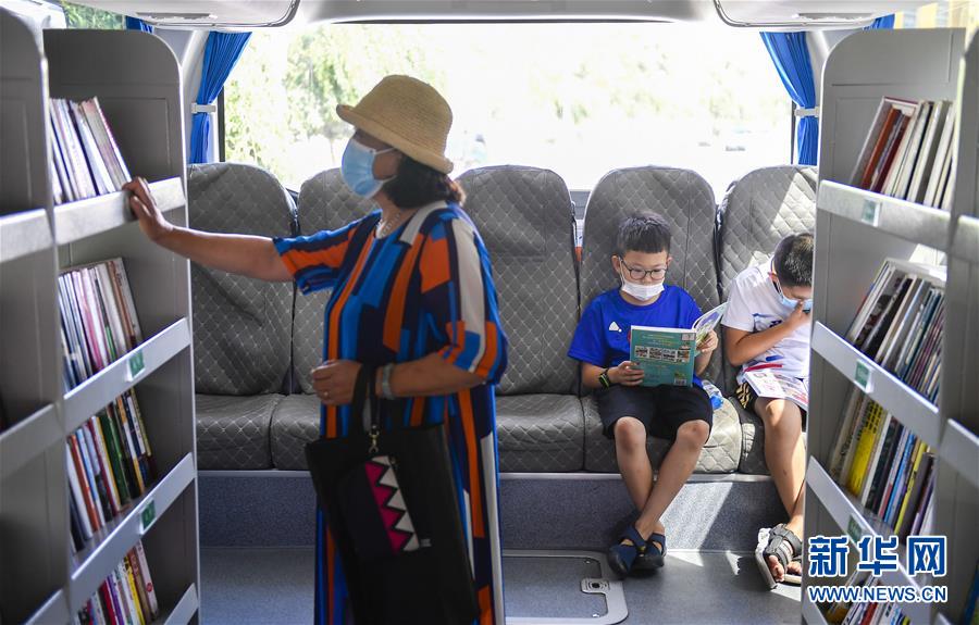 8月5日,長春市民在“流動圖書館”里看書。三千冊圖書,一輛大巴車,穿梭在城市的街頭巷尾。在吉林長春,長春市圖書館利用流動圖書車,定期在市內(nèi)15個固定服務(wù)點間巡回流動,為市民提供便捷的圖書借閱服務(wù)。新華社記者許暢攝