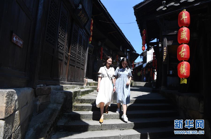 8月5日,游客在豐盛古鎮(zhèn)游覽。近年來,重慶市巴南區(qū)引入社會資本,按照“修舊如舊、適度開發(fā)”的原則對豐盛古鎮(zhèn)進行保護性修繕和景區(qū)化打造,讓古鎮(zhèn)在保留原有歷史人文風貌的同時,煥發(fā)新活力。新華社記者王全超攝