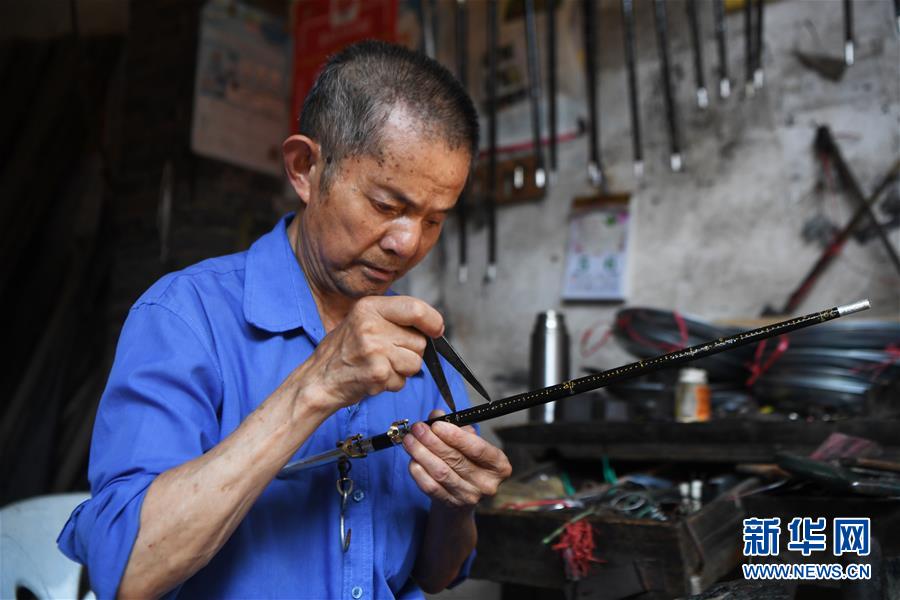 8月5日,豐盛古鎮(zhèn)經營秤桿店的居民王澤喜在制作秤桿。近年來,重慶市巴南區(qū)引入社會資本,按照“修舊如舊、適度開發(fā)”的原則對豐盛古鎮(zhèn)進行保護性修繕和景區(qū)化打造,讓古鎮(zhèn)在保留原有歷史人文風貌的同時,煥發(fā)新活力。新華社記者王全超攝