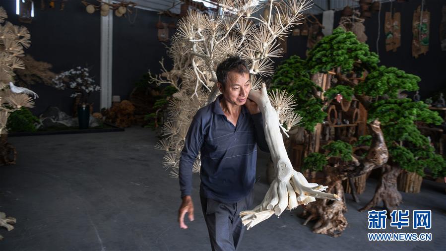 8月7日,一名工人在永??h永安鄉(xiāng)根雕工藝品就業(yè)扶貧車間搬運根雕半成品。2017年以來,廣西桂林市永??h永安鄉(xiāng)通過幫扶返鄉(xiāng)青年創(chuàng)業(yè)的方式,建立起根雕工藝品就業(yè)扶貧車間,組織貧困群眾進(jìn)車間務(wù)工學(xué)藝,把當(dāng)?shù)刎S富的朽木和柑橘樹根枝資源利用起來,加工成盆景、茶桌、吊燈等根雕工藝品,不僅幫助貧困群眾在家門口掌握一技之長,還讓他們在脫貧摘帽后實現(xiàn)穩(wěn)定增收。新華社記者張愛林?jǐn)z
