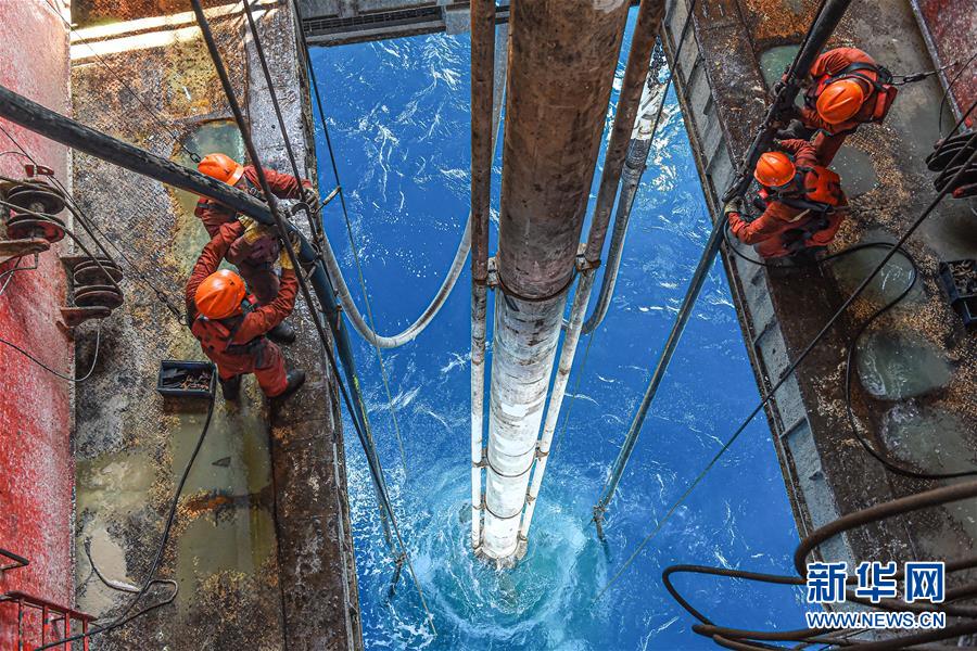 鉆井隊分兩班24小時不間斷運轉(zhuǎn)。在一個班次中,9名鉆井工人協(xié)同操控鉆井設(shè)備,鉆探著海洋油氣資源。契入海底的“探針”??蛇_五、六千米。