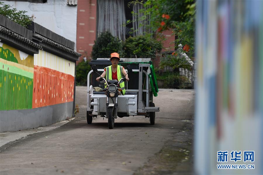 湖州市吳興區(qū)妙西鎮(zhèn)龍山村清運人員在村里收集生活垃圾(8月5日攝)。近年來,浙江省通過創(chuàng)新宣傳教育,多措并舉促進垃圾分類投放、收運及處置的良性循環(huán),引領(lǐng)垃圾分類成為城鄉(xiāng)居民的生活新風(fēng)尚。新華社記者黃宗治攝。