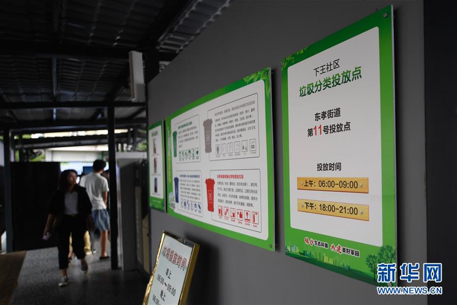 在金華市金東區(qū)東孝街道一社區(qū)拍攝的垃圾分類投放點(7月16日攝)。近年來,浙江省通過創(chuàng)新宣傳教育,多措并舉促進垃圾分類投放、收運及處置的良性循環(huán),引領(lǐng)垃圾分類成為城鄉(xiāng)居民的生活新風(fēng)尚。新華社記者黃宗治攝。