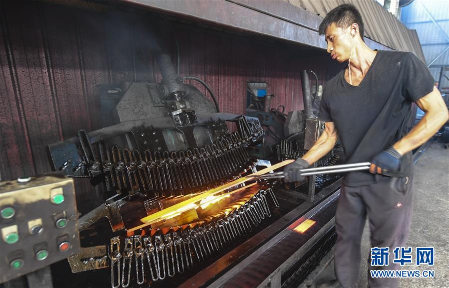 8月9日,河北大城縣南趙扶鎮(zhèn)一家板簧生產(chǎn)企業(yè)員工在板簧淬火生產(chǎn)線上作業(yè)。河北省大城縣南趙扶鎮(zhèn)是該縣農(nóng)機(jī)配件行業(yè)傳統(tǒng)生產(chǎn)基地。疫情以來(lái),南趙扶鎮(zhèn)引導(dǎo)企業(yè)做好風(fēng)險(xiǎn)防范,在農(nóng)機(jī)配件行業(yè)與世界各地客商及品牌開展方式多樣的合作,出口訂單不降反升。截至目前,該縣農(nóng)機(jī)配件行業(yè)出口總銷量達(dá)8000余萬(wàn)元,較去年同期增長(zhǎng)30%。新華社記者李曉果攝。