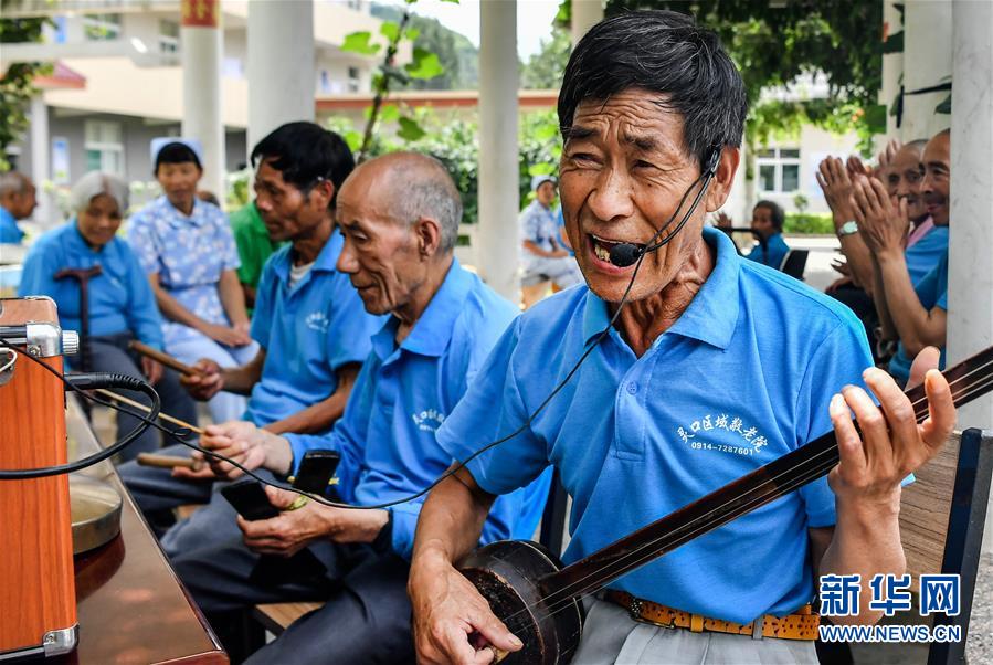陜西商洛市洛南縣靈口區(qū)域敬老院的老人們?cè)诔o板書(shū)(7月28日攝)。據(jù)了解,陜西洛南縣目前共有9所敬老院,設(shè)置床位760張,對(duì)全縣愿意到敬老院的381名農(nóng)村特困人員實(shí)行集中供養(yǎng)政策。新華社記者劉瀟攝。