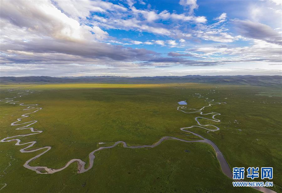俯瞰泥拉壩濕地里彎曲的河流,該濕地泥炭富集、水系發(fā)達(dá)(8月9日攝,無人機(jī)照片)。新華社記者江宏景攝。