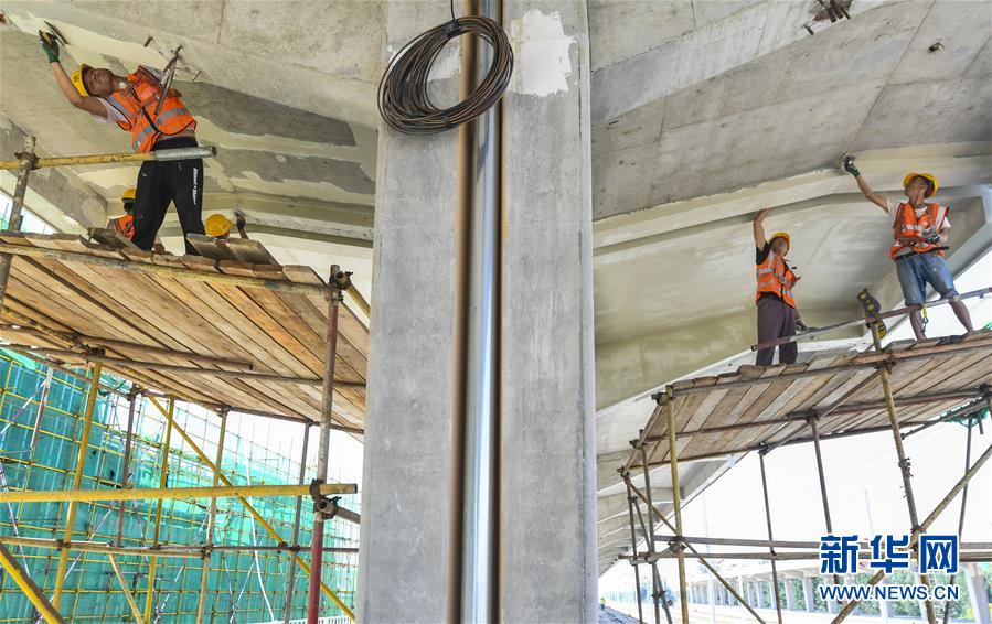 8月10日,工人在京雄城際鐵路霸州北站建設(shè)工地為雨棚梁底抹膩?zhàn)?。京雄城際鐵路霸州北站站臺(tái)雨棚混凝土結(jié)構(gòu)施工日前全部完成,目前霸州北站已全面轉(zhuǎn)入裝飾裝修和機(jī)電安裝階段,預(yù)計(jì)2020年底投入使用。京雄城際鐵路是連接北京市區(qū)、大興機(jī)場(chǎng)和雄安新區(qū)的重要干線。建成后,將進(jìn)一步完善京津冀區(qū)域高速鐵路網(wǎng)結(jié)構(gòu),便利沿線群眾出行,對(duì)于推動(dòng)京津冀協(xié)同發(fā)展和支撐建設(shè)雄安新區(qū)具有重要意義。新華社記者李曉果攝。