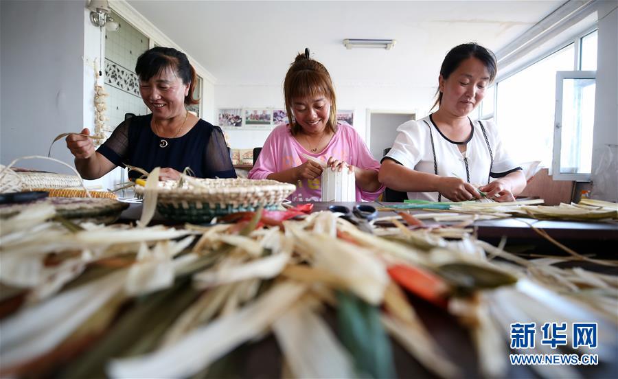 8月12日,參加草編合作社的村民使用稻草稈和玉米棒葉編制草編工藝品。近年來,吉林省洮南市福順鎮(zhèn)春華村在脫貧攻堅工作中堅持以特色產(chǎn)業(yè)扶貧為重點,推動稻田養(yǎng)蟹特色種養(yǎng)殖、手工藝草編等扶貧項目發(fā)展,通過合作社等形式構建精準防返貧長效機制,幫助困難群眾實現(xiàn)穩(wěn)定增收。新華社記者 雒圓 攝