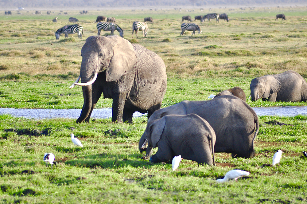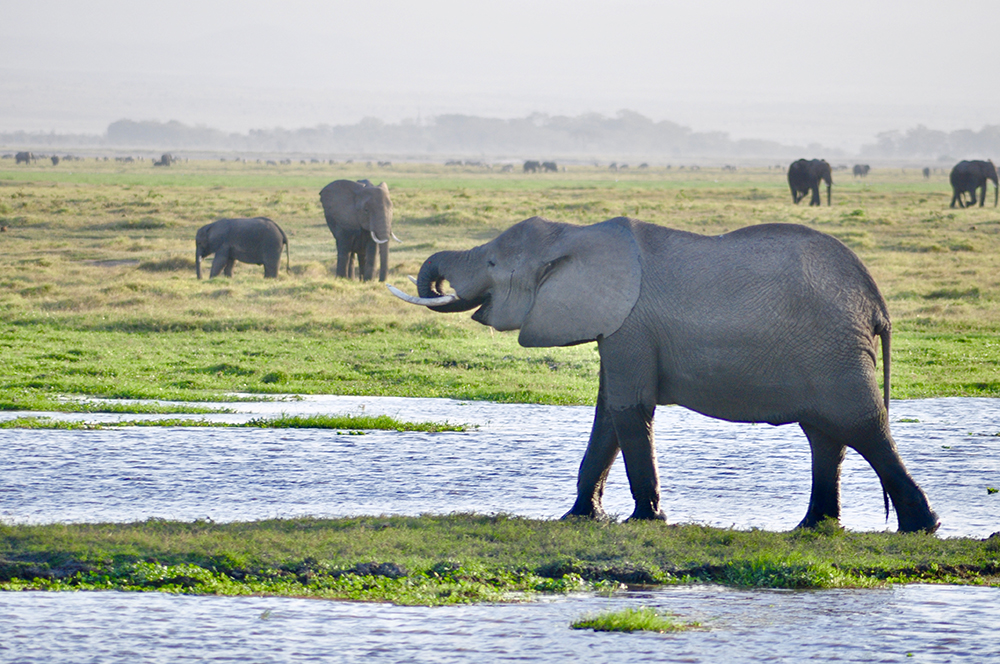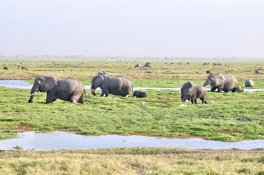 肯尼亞?wèn)|南部,與坦桑尼亞接壤的安博賽利國(guó)家公園,距內(nèi)羅畢240公里,因水草豐美而成為野生非洲大象的樂(lè)園。