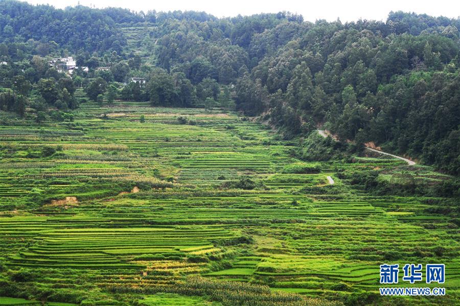 這是8月13日拍攝的鞍子鎮(zhèn)大林村梯田景色。時下,重慶市彭水苗族土家族自治縣鞍子鎮(zhèn)大林村的梯田景色迷人,構(gòu)成一幅幅山鄉(xiāng)田園美景。新華社記者王全超攝