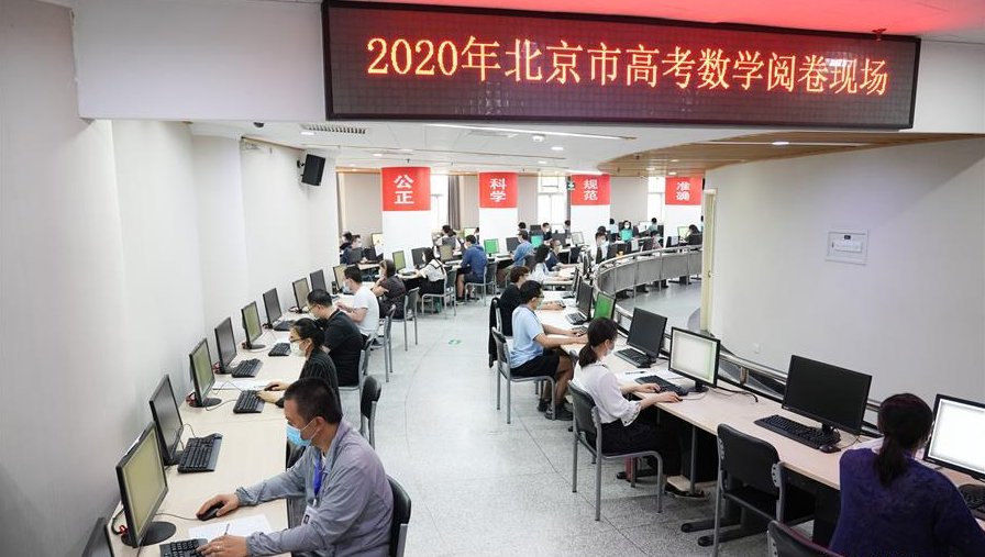 7月16日,評卷老師在位于清華大學(xué)的高考數(shù)學(xué)閱卷現(xiàn)場用計(jì)算機(jī)系統(tǒng)閱卷。
