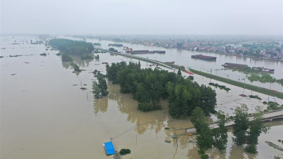 這是7月21日拍攝的被淹的南京市高淳區(qū)陽江鎮(zhèn)勝利圩。