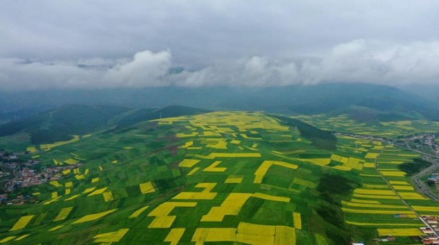 時下正值高原油菜花競相綻放的季節(jié),在青海省海北藏族自治州門源回族自治縣,金黃色的油菜花在高原藍天和云霧映襯下形成一幅壯麗畫卷,吸引游客前來觀賞。