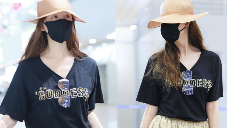 關(guān)曉彤淡定抱臂行走,脖子上掛U型枕毫無偶像包袱。