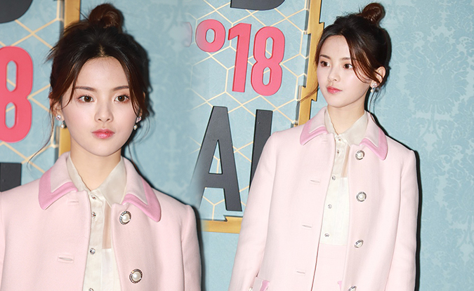 楊超越穿粉色大衣嫻靜優(yōu)雅 扎丸子頭顯活潑