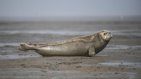 遼寧盤錦雙臺河口海域灘涂上出現(xiàn)大批洄游棲息的斑海豹。每年2月到5月,成群的斑海豹都會洄游至遼河入??谔幓顒?。