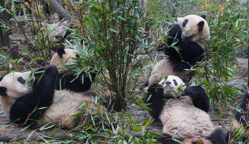 當日,在成都大熊貓繁育研究基地,大熊貓“滾滾”們迎來2020年的第一天。不少外地游客選擇在假期來到成都,觀看可愛的大熊貓。