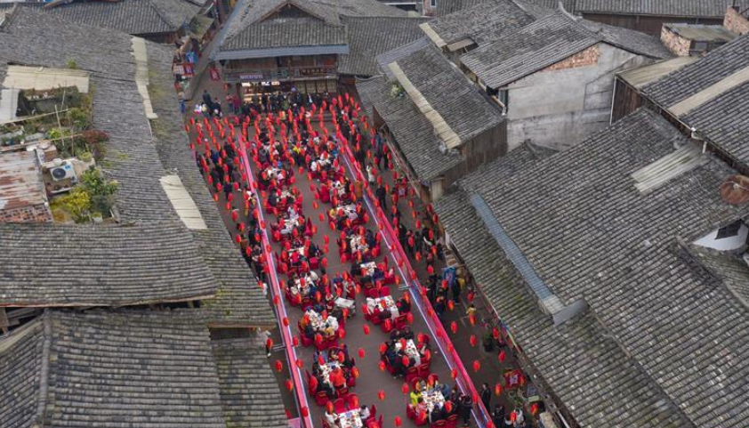 當日,廣西融水苗族自治縣桿洞鄉(xiāng)黨鳩村在柳州市婦聯(lián)支持下,在烏英苗寨舉辦家庭運動會,通過挑禾把、趣味籃球賽等活動,迎接即將到來的傳統(tǒng)苗年。