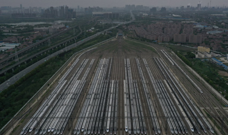 2020年4月6日,武漢動車段高鐵動車組整裝待發(fā)(無人機照片)。