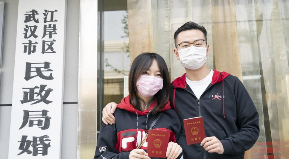 4月3日起,武漢市婚姻登記機構陸續(xù)恢復辦理婚姻登記業(yè)務?;橐霎斒氯诵璩志G色健康碼預約登記,分批分時辦理。