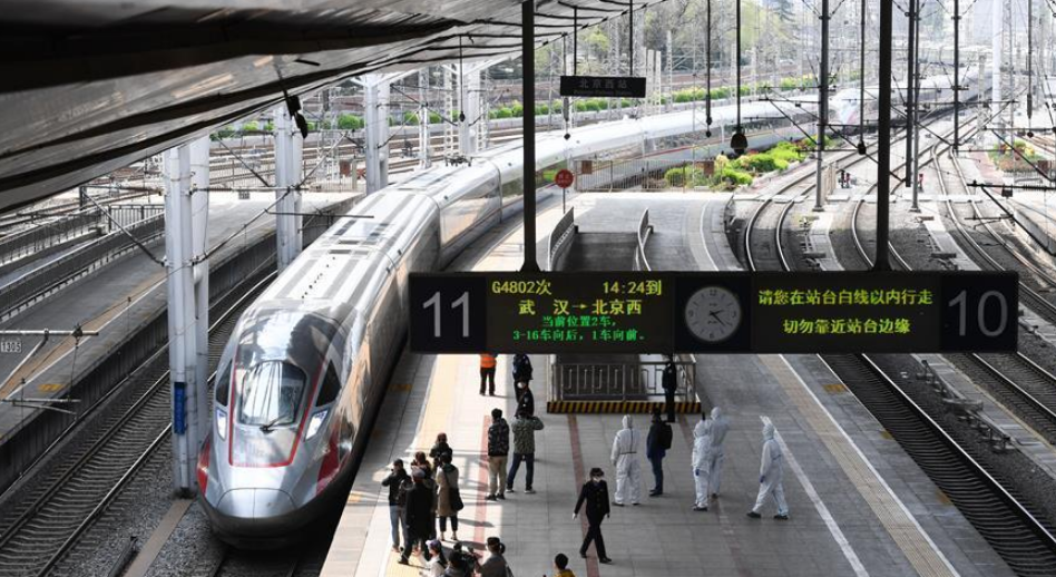 當日,武漢市正式解除離漢離鄂通道管控措施,首趟武漢返京列車G4802次列車抵達北京西站。