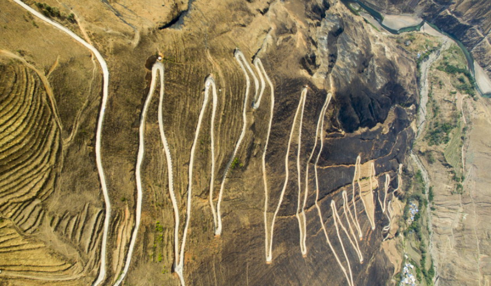 航拍云南山區(qū)“魔鬼公路” 在原地盤旋海拔下降1200米
