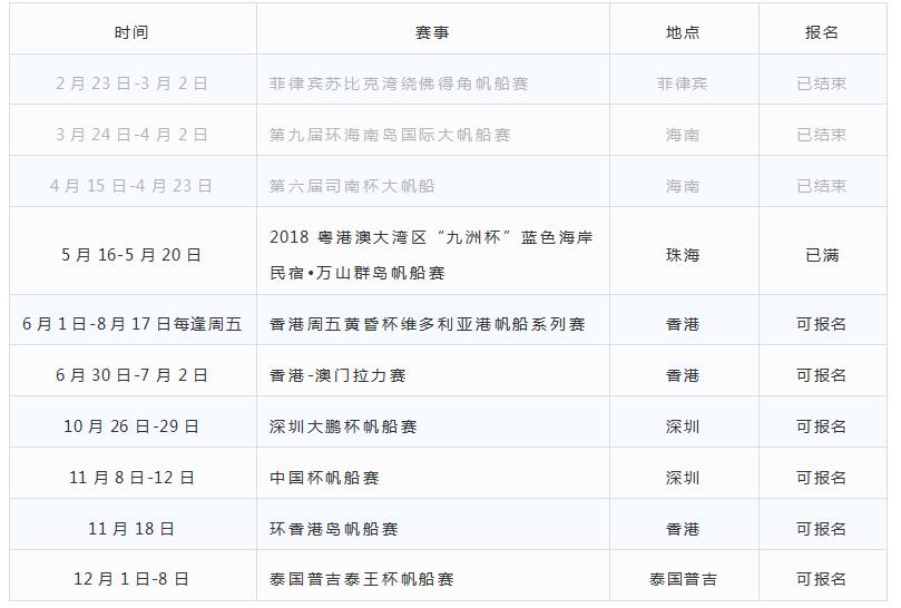 2018年已經(jīng)參加了三場(chǎng)國際大型帆船賽事,2月份在菲律賓舉辦的蘇比克灣繞佛得角帆船賽、3月份的環(huán)海南島帆船賽以及4月份的司南杯帆船賽,亞太航海三場(chǎng)比賽全部豪取桂冠!接下來的5-12月,亞太航海還將參加7場(chǎng)國際帆船賽事,繼續(xù)創(chuàng)造普通人的航海傳奇!同時(shí)接受嘉賓船員體驗(yàn)報(bào)名、企業(yè)贊助。