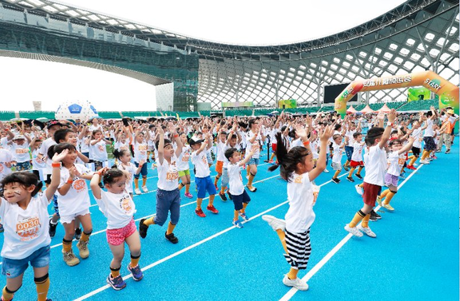 而在環(huán)球足球挑戰(zhàn)環(huán)節(jié),許多小選手是第一次接觸足球。通過數(shù)碼感應(yīng)裝置和小選手們佩戴的智能手環(huán),將帶球、頂球、射門等足球動(dòng)作實(shí)時(shí)反饋呈現(xiàn)運(yùn)動(dòng)結(jié)果,其樂無(wú)窮的項(xiàng)目讓孩子們一一挑戰(zhàn)停不下來!