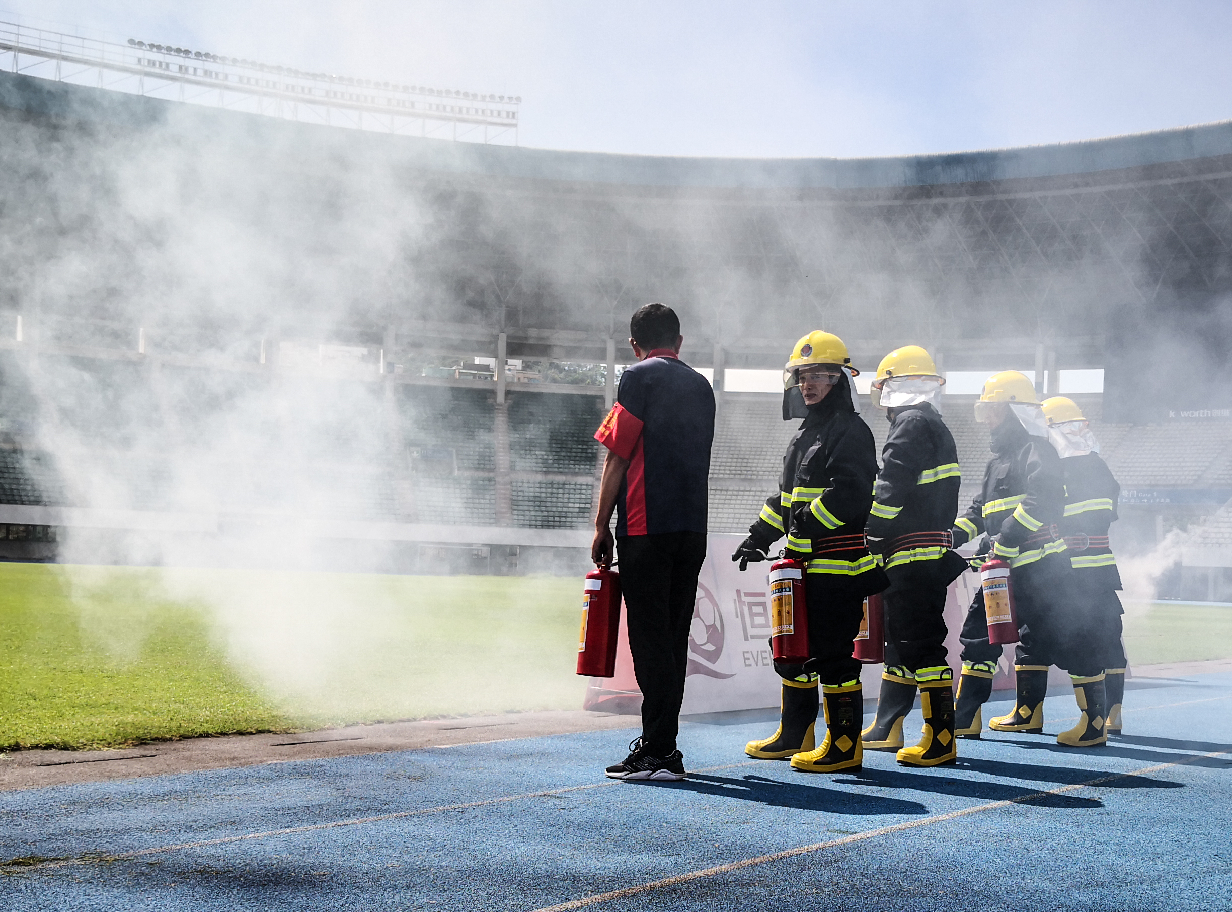 為確保本次演練到位,體育中心特別邀請了羅湖中學(xué)初中部的同學(xué)參加演練,讓孩子們有一次親身感受火災(zāi)疏散的經(jīng)歷,了解火災(zāi)疏散的流程,提升同學(xué)們的自救意識和技能。15:00,體育中心體育場,隨著一聲警報聲的響起各工作組在體育場播音系統(tǒng)指揮下第一時間到達(dá)指定位置,搶險求援組迅速開展消防滅火,警戒疏散組指揮在場地和看臺的學(xué)生快速、有序從就近路線撤離至廣場安全區(qū)域,并尋找是否有遺漏的學(xué)生。師生到達(dá)廣場安全區(qū)域,各班班主任清點學(xué)生人數(shù),確保學(xué)生無一人滯留,并層層上報。不到9分鐘時間,600多名羅湖中學(xué)初中部師生全部安全撤離。整個演習(xí)過程流程清晰,信息傳達(dá)準(zhǔn)確、及時,疏散指揮反應(yīng)快速,未發(fā)生學(xué)生擁擠、無序的安全隱患,演習(xí)效果理想。