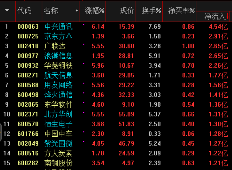 科技股獲得資金青睞,金融、消費(fèi)資金流出明顯。