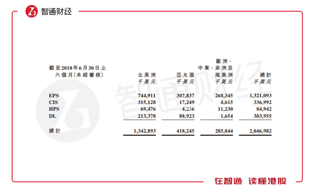 根據(jù)該公司業(yè)務(wù)布局情況,核心的EPS主要布局在北美洲地區(qū),收入7.45億美元,同比增長3%,收入占比36.4%,亞太區(qū)為3.08億美元,同比增長2.7%,北美及亞太區(qū)的EPS收入占比達(dá)51.45%。所有產(chǎn)品布局在亞太區(qū)及北美區(qū)收入合計17.61億美元,同比2.2%,收入占比86.03%。