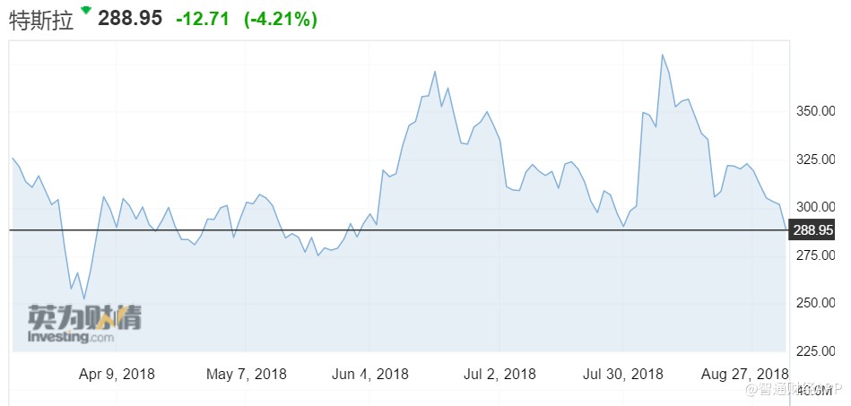 特斯拉周二盤前跌超2%,開盤后一路走低,收跌4.21%,報288.95美元。截至上周五,今年以來特斯拉股價累跌超5%,同期標普500大盤累漲9.5%;過去12個月,特斯拉股價累跌15%,同期標普大盤累漲17%。