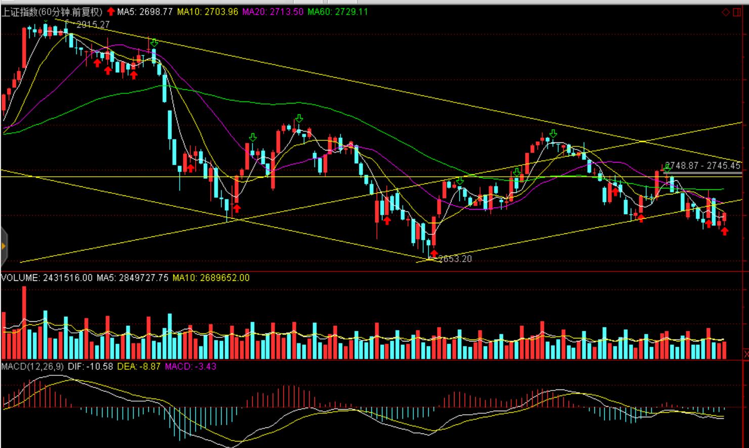 操作建議:中期方向尚不明朗,短期小幅震蕩(滬指2700---2750點(diǎn)、創(chuàng)業(yè)板1400--1450點(diǎn)區(qū)間),在此區(qū)間適度短線高拋低吸。