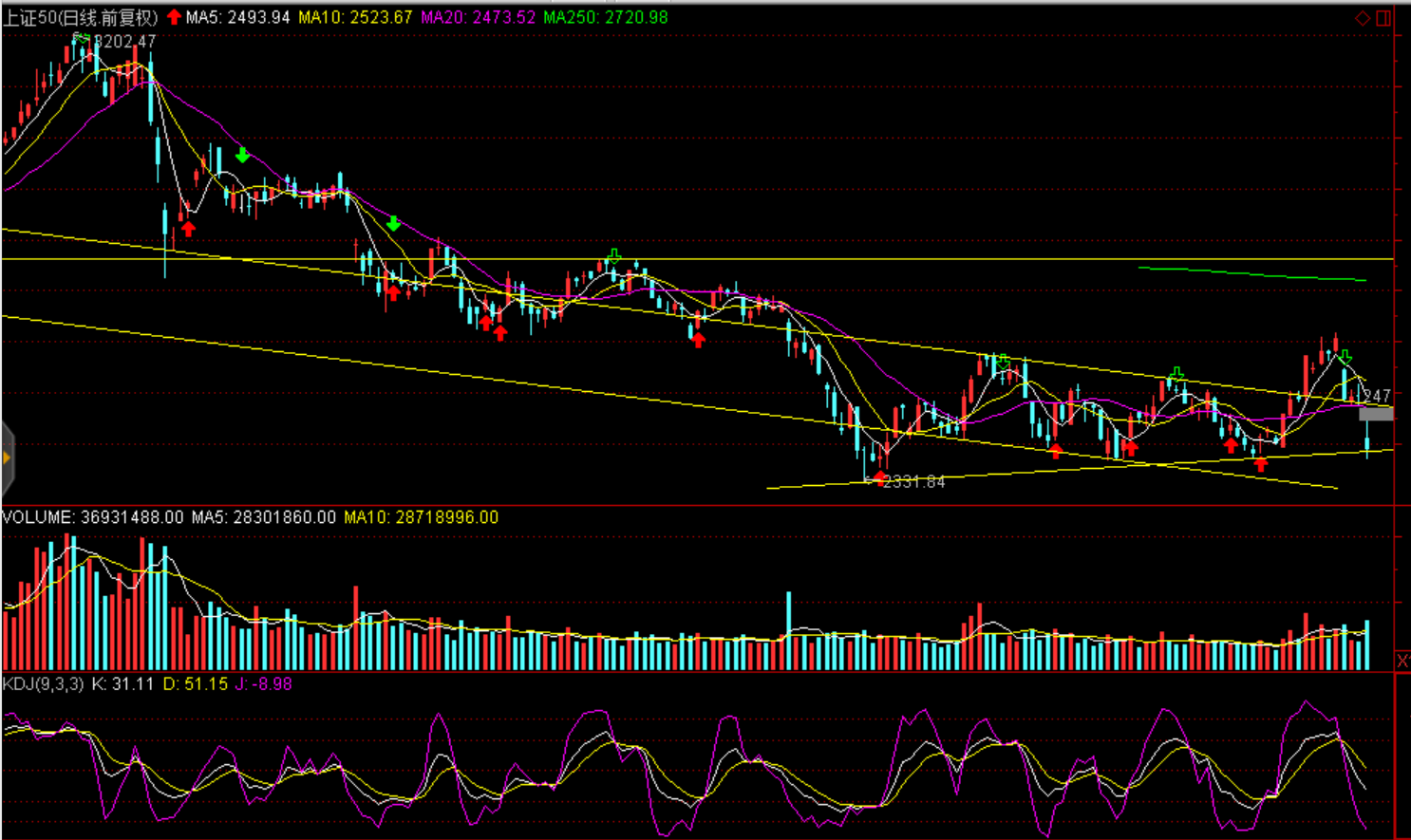 消息面:國務院發(fā)布完善促進消費體制機制實施方案,進一步放寬服務消費領域市場準入;中國工程機械1-9月納入統(tǒng)計的25家主機制造企業(yè),共計銷售各類挖掘機械產(chǎn)品156242臺,同比漲幅53.3%;國內(nèi)市場銷量142281臺,同比漲幅49.3%;出口銷量13852臺,同比漲幅109.7%;離岸人民幣兌美元收復6.9關口,紐約尾盤漲458個基點,報6.8786,漲幅為0.66%,刷新近三周新高;國債期貨大幅收高,10年期主力合約收漲0.41%,創(chuàng)近四個月最大單日漲幅;歷史經(jīng)驗看美股市場大幅回調(diào)期間,通常都伴隨著全球范圍內(nèi)風險偏好的急劇惡化,表現(xiàn)為風險資產(chǎn)悉數(shù)大跌、而避險資產(chǎn)如國債、黃金、日元則多數(shù)向好,這也凸顯了整體避險情緒的升溫;受到海外持續(xù)下跌影響,雖處于估值底部的A股不可避免受到錯殺,股指進入弱平衡區(qū)間運行。海外股市影響A股重構弱平衡區(qū)間,短期恐慌殺跌后進入震蕩筑底,底部形成視諸多因素共振影響,金融市場穩(wěn)定、監(jiān)管政策導向、行業(yè)政策及估值決定。短期上證50能否企穩(wěn)對于股指至關重要。