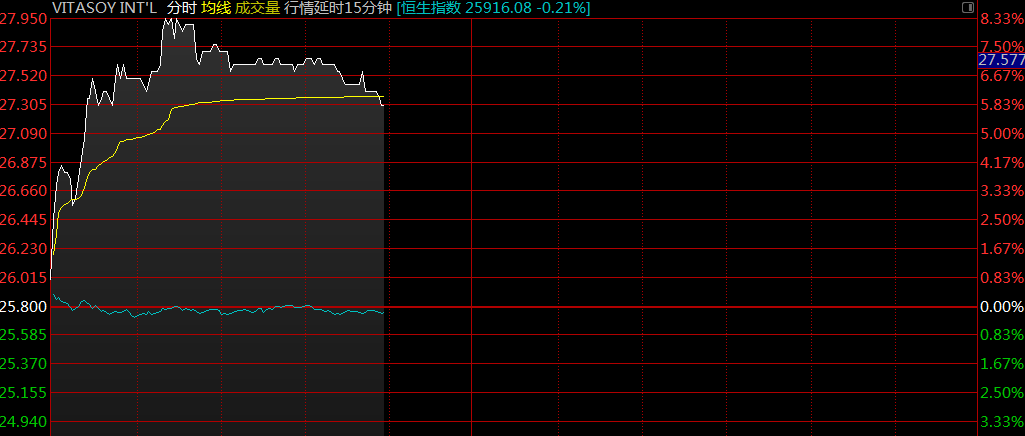 中期業(yè)績超預(yù)期維他奶國際(00345)續(xù)漲6.59%