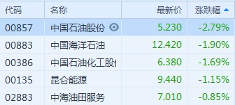 港股異動(dòng)︱受國(guó)際油價(jià)下跌拖累石油股全線下挫