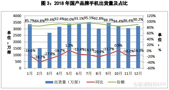 中國信通院:2018年國內(nèi)手機出貨量同比下降15.6%