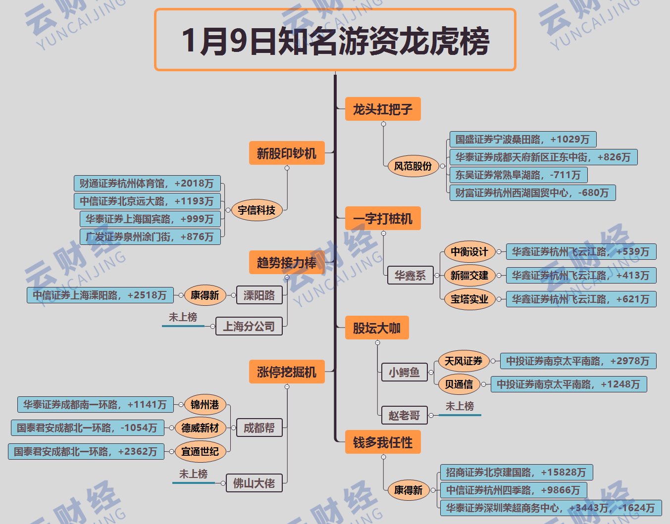 其他游資方面,小鱷魚買入天風(fēng)證券(601162)2978萬,買入貝通信(603220)1248萬,成都幫獲利賣出德威新材(300325)1054萬,買入錦州港(600190)1141萬。