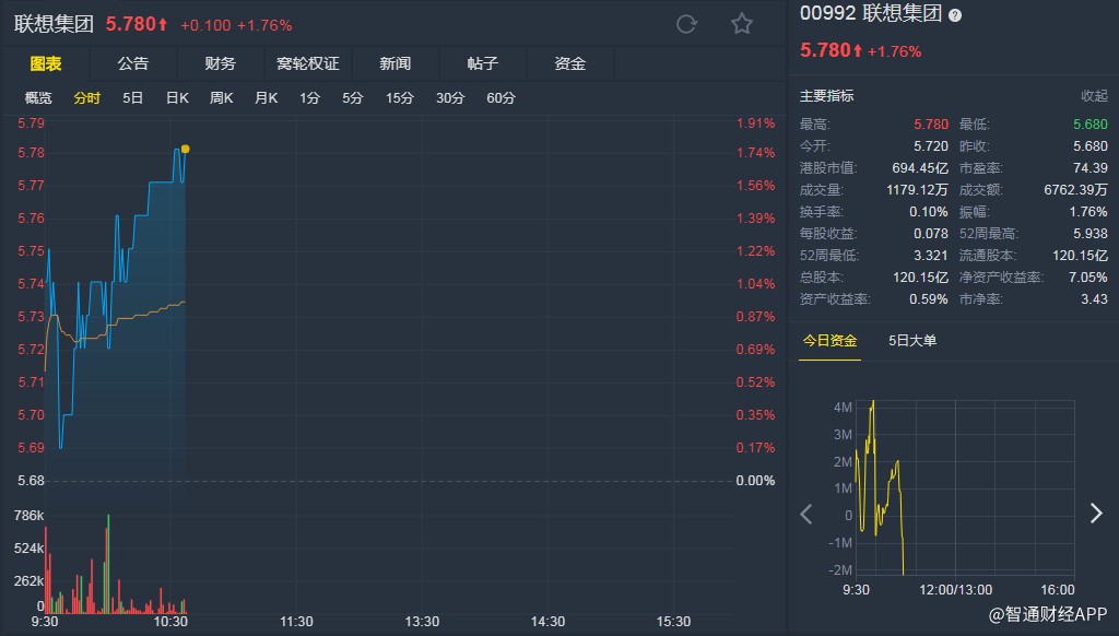 時(shí)富:予聯(lián)想集團(tuán)(00992)目標(biāo)價(jià)6.7元評級“買入”