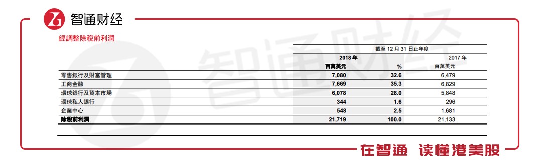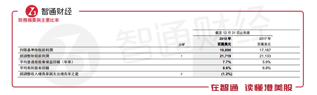 列賬基準(zhǔn)除稅前利潤(rùn)為199億美元,較2017年增加16%。經(jīng)調(diào)整除稅前利潤(rùn)為217億美元,同比增長(zhǎng)3%。