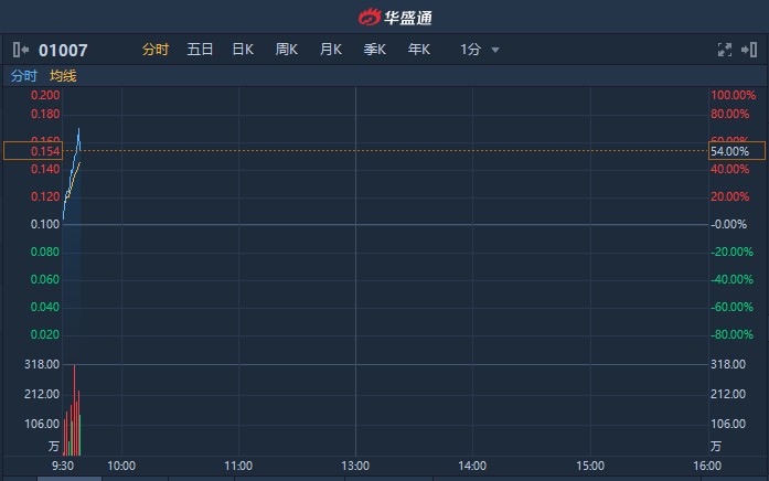 智通財經(jīng)APP獲悉,龍輝國際控股(01007)早盤受資金追捧,快速拉升,一度漲70%,截至9時38分,漲54%,報0.154港元,成交額達2218萬港元。