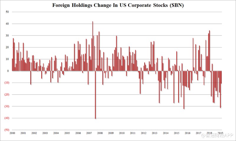 在過去的12個(gè)月里,外國投資者總共拋售了了2050億美元的美國公司股票,這是有記錄以來外國投資者對(duì)美股進(jìn)行的最大規(guī)模的減倉。(林雅蕓)