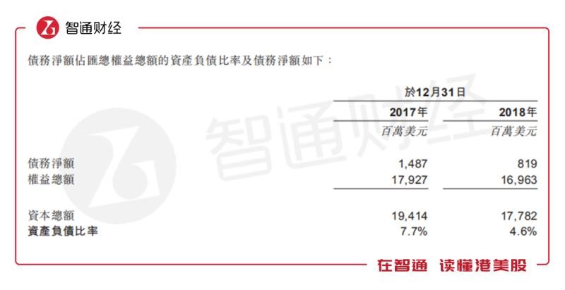 好在公司債務凈額在2018年已經(jīng)從2017年的14.98億元下降至8.19億元,而債務凈額占匯總權(quán)益額的資產(chǎn)負債比率也由7.7%降至4.6%。