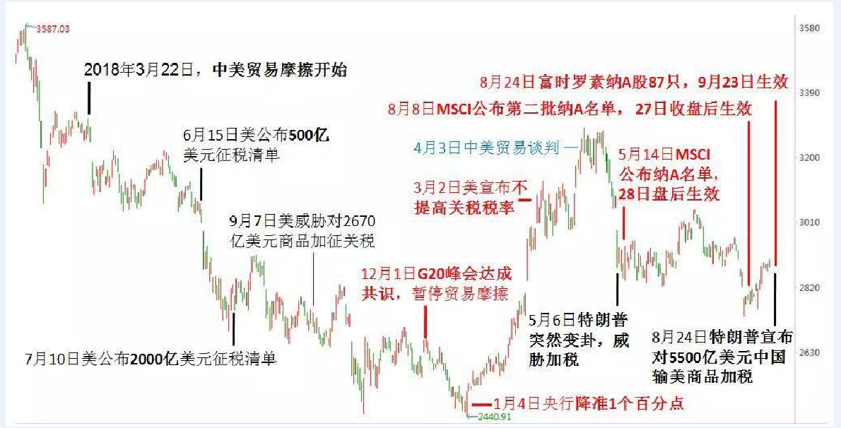 消息面:國務(wù)院印發(fā)《關(guān)于進一步激發(fā)文化和旅游消費潛力的意見》。國務(wù)院關(guān)稅稅則委員會決定,對原產(chǎn)于美國的5078個稅目、約750億美元商品,加征10%、5%不等關(guān)稅,分兩批自2019年9月1日12時01分、12月15日12時01分起實施;國務(wù)院關(guān)稅稅則委員會決定,自2019年12月15日12時01分起,對原產(chǎn)于美國的汽車及零部件恢復(fù)加征25%、5%關(guān)稅;證監(jiān)會發(fā)布《科創(chuàng)板上市公司重大資產(chǎn)重組特別規(guī)定》;證監(jiān)會發(fā)布《上市公司分拆所屬子公司境內(nèi)上市試點若干規(guī)定》(以下簡稱《若干規(guī)定》),并向社會公開征求意見;A股將于8月27日“入摩擴容”,當(dāng)天收盤后,大盤A股納入因子將由10%提升至15%;8月26日2019第六屆全球互聯(lián)網(wǎng)經(jīng)濟大會;2019世界人工智能大會即將于8月29日-31日在上海舉辦;思美傳媒實控人擬變更為四川省國資委。
