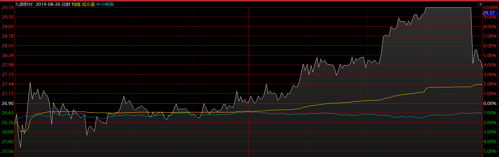 今年的市場(chǎng)有個(gè)特征,總是因?yàn)槟硞€(gè)人的一兩句話(huà)而大幅波動(dòng),好在市場(chǎng)對(duì)貿(mào)易摩擦的相關(guān)消息已逐漸變得不再敏感,消息次日市場(chǎng)跌幅也逐步減小。在周末貿(mào)易摩擦升溫消息刺激下,上周一大盤(pán)低開(kāi),但低開(kāi)幅度遠(yuǎn)小于預(yù)期,市場(chǎng)也沒(méi)有出現(xiàn)恐慌的情況。尤其是高標(biāo)股九鼎新材,在前一交易日尾盤(pán)大幅分化的情況下,周一早盤(pán)僅僅微幅低開(kāi)兩個(gè)點(diǎn),可以說(shuō)這是一個(gè)明顯的抄底信號(hào):市場(chǎng)這里跌不下去。