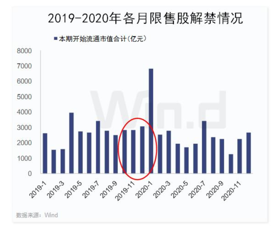 解禁風(fēng)險(xiǎn):Wind數(shù)據(jù)顯示,2019年四季度和2020年一季度,A股解禁市值為8749.68億元和12134.82億元,單季度解禁市值處于2015年來的高位。